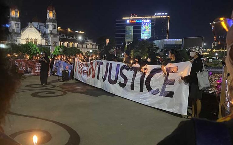 RASIKAFM.COM | SEMARANG – Ratusan orang menggelar Aksi Lilin di Tugu Muda Semarang, Jumat (16/12/2022) malam. Kegiatan itu dilakukan sebagai wujud menuntut keadilan kepada negara atas kasus pembunuhan pegawai Badan Pendapatan Daerah (Bapenda) Kota Semarang yakni Iwan Boedi Prasetijo Paulus yang belum terungkap.
