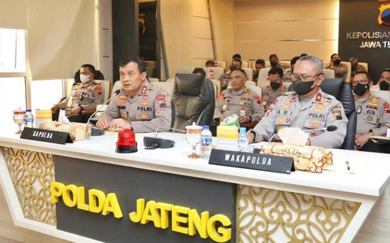 SEMARANG – Kapolda Jateng, Irjen Pol Ahmad Luthfi mengadakan rapat virtual membahas antisipasi peningkatan kasus Covid-19 di Jawa Tengah bersama PJU dan kapolres jajaran Senin (31/1/2022).