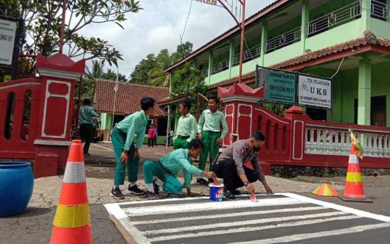 Aksi pengecatan jalan dengan membuat zebra cross tersebut dilakukan oleh siswa-siswi dari SD Regunung 01 Kecamatan Tengaran Kabupaten Semarang Kamis 27 Oktober 2022 pagi.