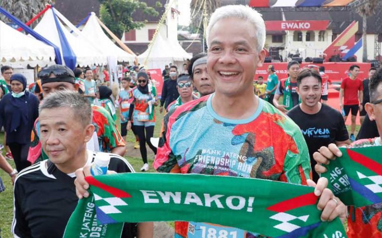 Sejak pukul 05.00 WIB, para pelari itu sudah bersiap di garis start. Mereka langsung heboh, saat Gubernur Jawa Tengah, Ganjar Pranowo beserta istri, Siti Atikoh muncul di tengah-tengah peserta.