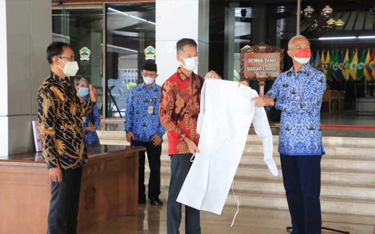 Semarang – Pemerintah Provinsi Jawa Tengah menerima bantuan berupa 1.000 pcs hazmat dari Semarang Japan Club. Bantuan tersebut diterima langsung oleh Gubernur Jawa Tengah, Ganjar Pranowo, di halaman Kantor Gubernur Jawa Tengah, Kamis (17/3/2022).