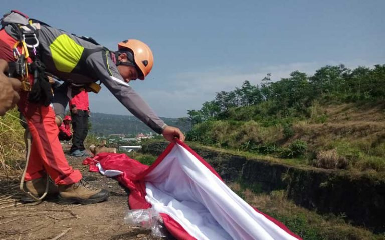 UNGARAN – Bendera Merah Putih dengan ukuran 45×17 meter dibentangkan di tebing Bukit Tegalepek, Sidomulyo, Ungaran Timur, Kabupaten Semarang, Rabu (17/8/2022). Hal itu bertepatan dengan peringatan Hari Ulang Tahun ke-77 Republik Indonesia pada.