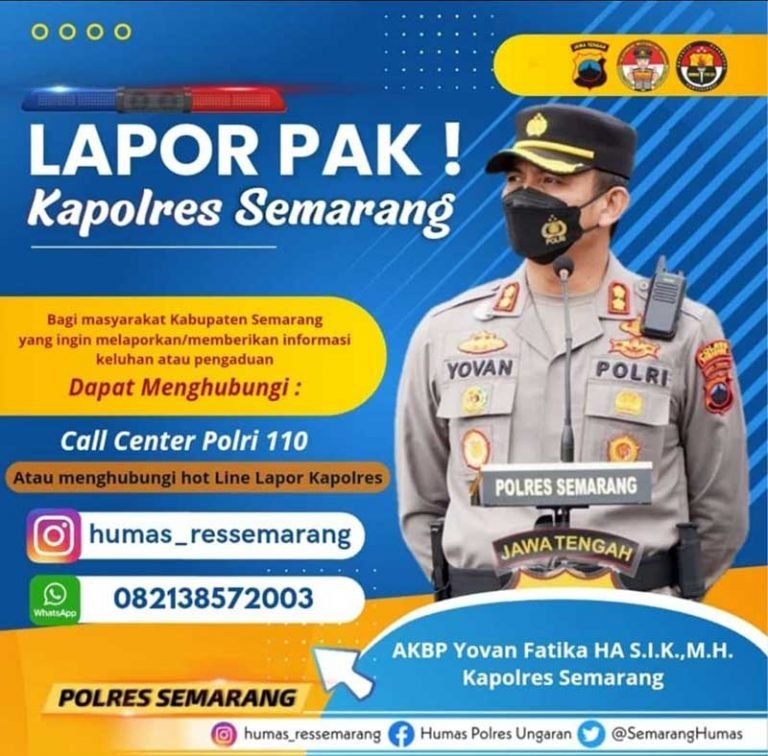 Sebagai informasi, layanan pengaduan ‘Lapor Pak’ bisa dimanfaatkan melalui nomor Whatsapp 082138572003, atau akun Instagram @humas_ressemarang serta call center Polri 110. (win)