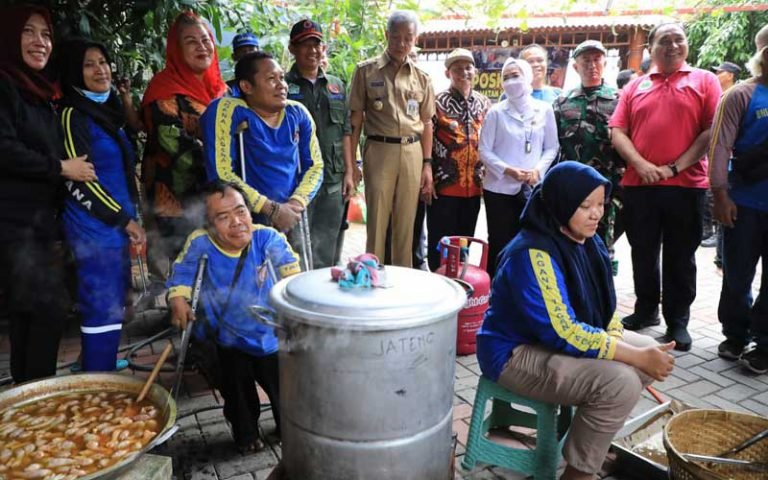 “Jangan ayam tok, dikasih sayur juga biar tidak bosan. Wah ini ada relawan disabilitas, makasih ya bro,” kata Ganjar.