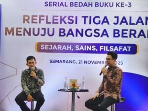 Semarang – Kantor Perwakilan Bank Indonesia Jawa Tengah (KPwBI Jateng) kembali melanjutkan agenda literasinya melalui Serial Bedah Buku Ketiga bertema “Refleksi Tiga Zaman (Sejarah, Sains, Filsafat) Menuju Bangsa Beradab”, Jumat (21/11/2025). Pada sesi kali ini, BI Jateng menghadirkan akademisi sekaligus penulis buku-buku filsafat populer, Fahruddin Faiz, untuk mengupas karyanya berjudul “Menaklukkan Kebahagiaan”.
