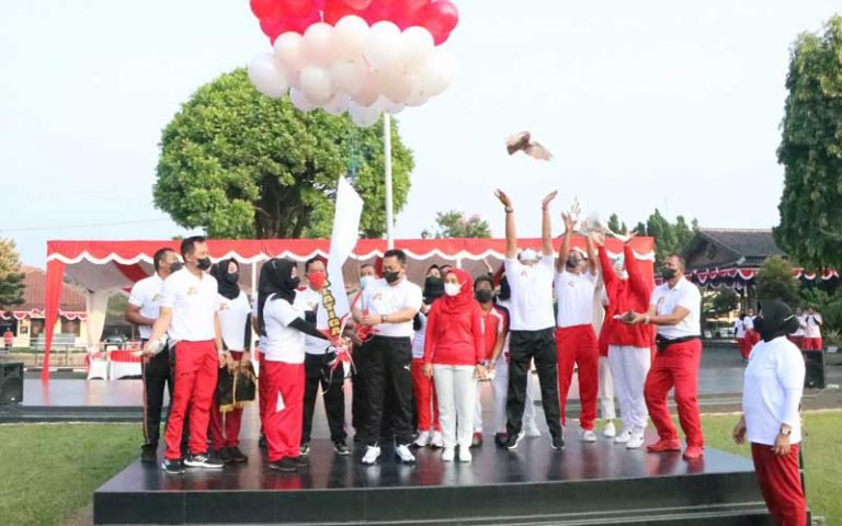 Kapolres Salatiga melepas Balon sebagai tanda dimulainya olah raga bersama dalam rangka hari Polwan ke 74
