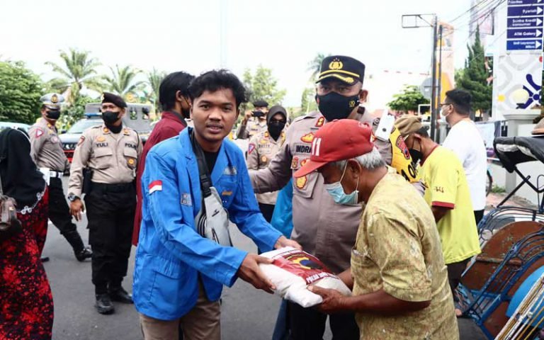 “Bantuan ini kami berikan kepada ratusan tukang ojek online maupun tukang ojek pangkalan, tukang becak, puluhan sopir truk, sopir angkutan umum dan ratusan buruh, dengan didampingi puluhan perwakilan organisasi kemahasiswaan antara” ujar Kapolres.