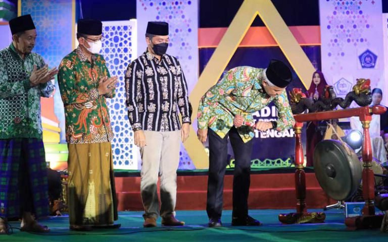 Kudus – Gubernur Jawa Tengah Ganjar Pranowo membuka Pekan Olahraga dan Seni Diniyah (Porsadin) VI tingkat Jawa Tengah di Alun-alun Kabupaten Kudus, Kamis (3/11/2022) malam. Ganjar berharap dari perhelatan itu menjadi ajang unjuk gigi dan memunculkan bakat-bakat para santri dan siswa Madrasah Diniyah untuk disiapkan dalam event yang lebih besar.