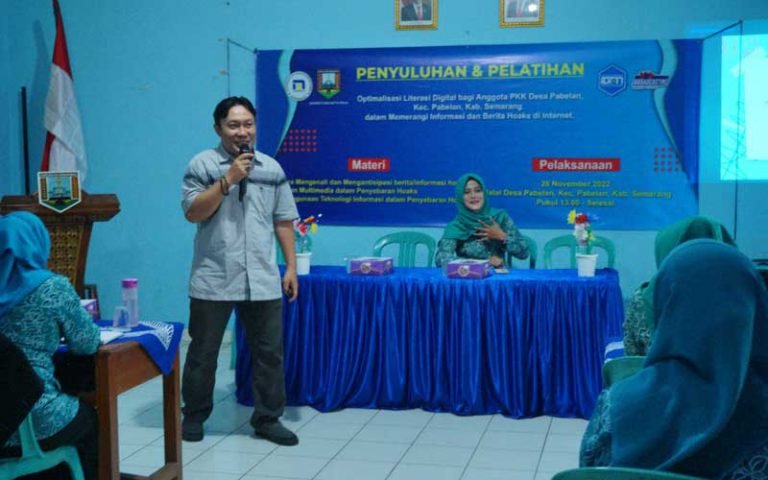 Dengan topik “Penyuluhan dan Pelatihan Optimalisasi Literasi Digital bagi anggota PKK Desa Pabelan dalam memerangi informasi dan berita hoak di internet” diikuti oleh pengurus dan anggota yang berjumlah lebih dari 30 peserta selama.