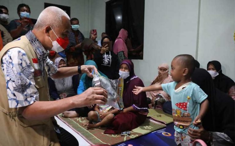 “Seneng dapat mainan dari pak Ganjar, bisa main rame-rame di sini,” kata Rio, salah satu anak yang mengungsi di tempat itu.