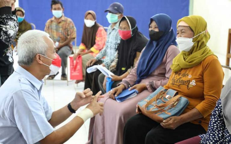 “Iki antri nopo bu? BLT nggih? Mpun angsal dereng (sudah dapat belum). Ayo antri yang tertib,” sapa Ganjar saat tiba di lokasi.