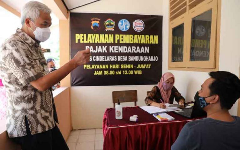 GROBOGAN – Ada hal unik ditemui Gubernur Jawa Tengah, Ganjar Pranowo saat kunjungan kerja ke Kabupaten Grobogan, Rabu (13/10). Di salah satu desa bernama Desa Bandungharjo, Ganjar menemukan adanya sistem pembayaran pajak kendaraan yang tak biasa.