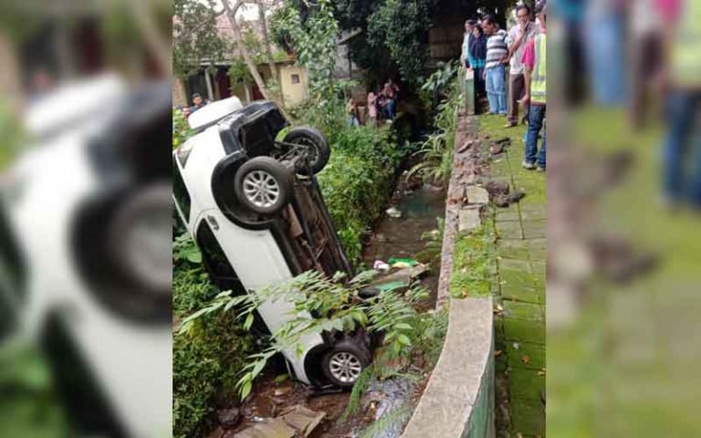 Diduga panik hingga Hilang Konsentrasi, Mobil Terios Putih Terjun ke Selokan Kridanggo Minggu, 16 Januari 2022 sekitar jam 14.00
