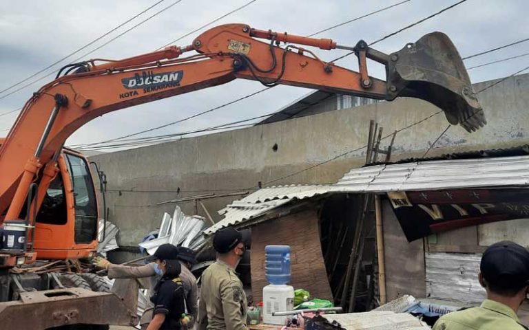 Diklaim Jadi Penyebab Banjir, Satpol PP Semarang Bongkar Puluhan PKL Di Kawasan Terminal Terboyo