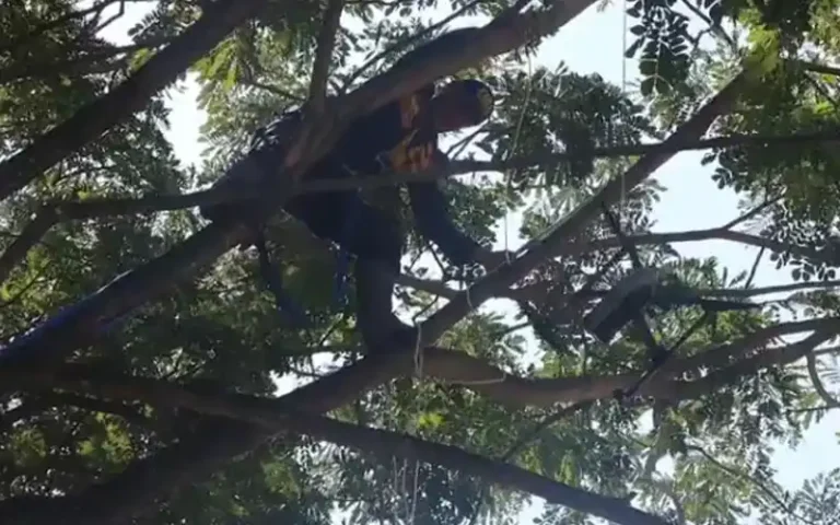 Tak berapa lama, empat personel Satpol PP dan Damkar Kabupaten Semarang yang telah dihubungi datang ke lokasi. Setelah melihat situasi dan letak drone yang tersangkut, sejurus kemudian seorang personel memanjat pohon dengan peralatan keamanan lengkap.
