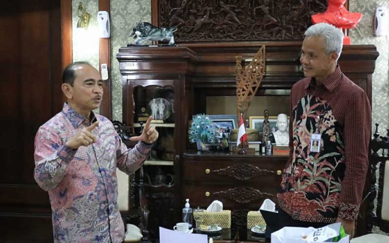 SEMARANG – Duta Besar Indonesia untuk Perancis, Mohamad Oemar menemui Gubernur Jawa Tengah, Ganjar Pranowo, di rumah dinasnya, Senin (14/11). Keduanya membahas investor potensial investasi dari Prancis serta potensi ekspor produk UMKM dari Jawa Tengah.