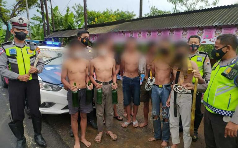 “Sebanyak 8 pemuda berhasil kami amankan berikut senjata tajam berupa celurit, minuman beralkohol, sabuk yang telah dipasangi gir dan juga sepeda motor,” kata dia.