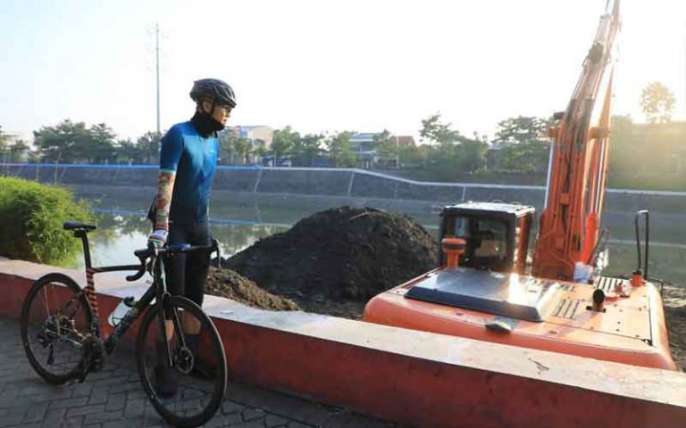 SEMARANG – Gubernur Jawa Tengah Ganjar Pranowo meninjau beberapa rumah pompa dan pengerukan sedimentasi Kanal Banjir Barat Kota Semarang sambil gowes, Selasa (9/11/2021). Ganjar ingin memastikan kesiapan alat dan petugas jaga mengantisipasi potensi hujan lebat dan banjir.