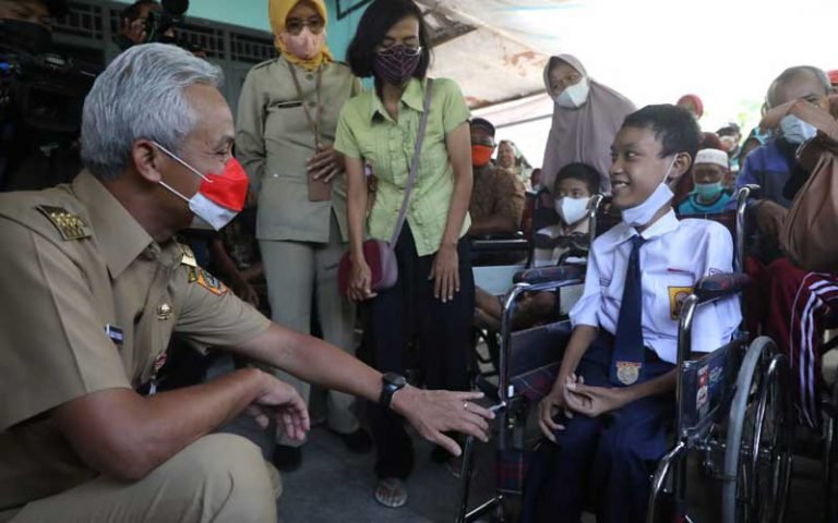“Ini menarik. Jadi kawan-kawan di Klaten ini ada komunitas namanya Satu Hati. Mereka sangat peduli kepada penyandang disabilitas, itu dampak luar biasa dari kejadian gempa Klaten Yogyakarta,” ujar Ganjar.