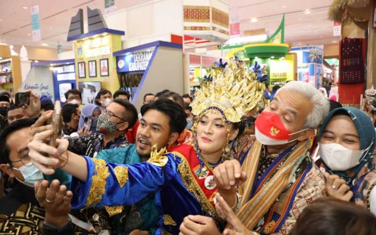 JAKARTA – Gubernur Jawa Tengah Ganjar Pranowo kembali menjadi target keroyokan pengunjung pameran. Para pengunjung menyerbu Ganjar untuk sekadar menyapa dan berfoto. Kali ini terjadi saat Ganjar melihat pameran Asosiasi Pemerintah Kabupaten Seluruh Indonesia (APKASI) Otonomi Expo 2022 yang digelar di Jakarta Convention Center (JCC), Rabu (20/7/2022).