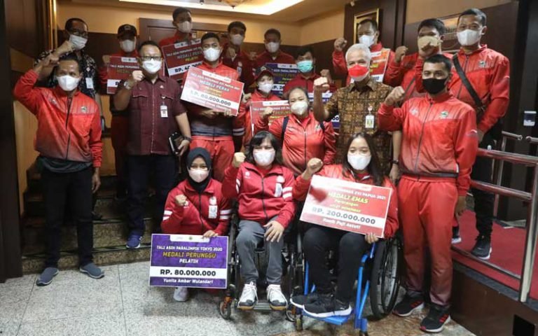 SEMARANG – Gubernur Jawa Tengah Ganjar Pranowo sangat serius memperhatikan masa depan atlet di Jawa Tengah, khususnya bagi mereka yang memiliki bakat dan berprestasi. Terakhir Ganjar menyerahkan tali asih sebagai penghargaan kepada atlet difabel dan pelatih yang sukses menyabet medali di Paralympic 2020 Tokyo Jepang tahun lalu dan Peparnas Papua 2021.