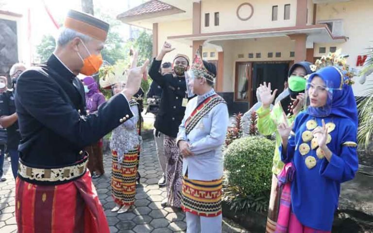 Ada yang berpakaian adat Lampung, Padang, Kalimantan, Bali dan lainnya. Ganjar sendiri tampil dengan memakai baju adat makassar.