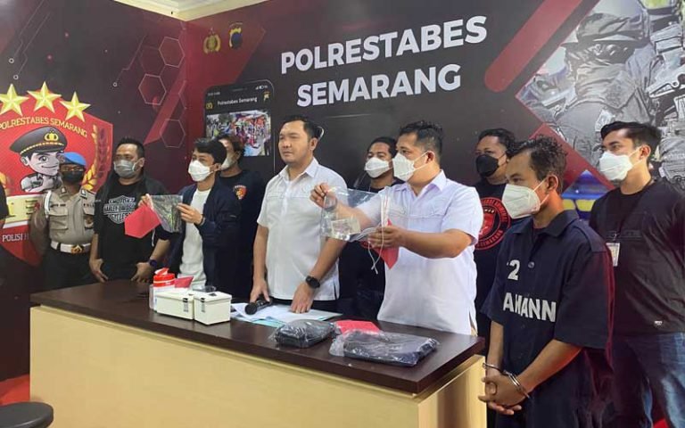 SEMARANG – Unit Resmob Satreskrim Polrestabes Semarang mengamankan sejoli yang melakukan pembegalan dan penusukan terhadap ojek online (Ojol) yang terjadi Jalan Arjuna, Keluraha Pendrikan Kidul, Kecamatan Semarang Tengah Kota Semarang.