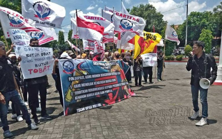 UNGARAN – Puluhan massa yang tergabung dalam Federasi Serikat Buruh Garment Kerajinan Tekstil Kulit dan Sentra Industri (FSB Garteks) Konfederasi Serikat Buruh Sejahtera Indonesia (KSBSI) Kabupaten Semarang melayangkan protes di depan Kantor Dinas Tenaga Kerja (Disnaker) Kabupaten Semarang, Rabu (28/9/2022) pagi.