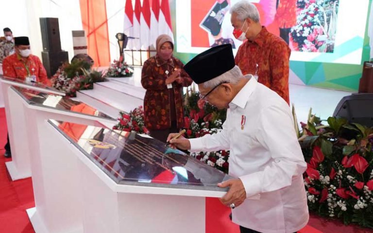 RASIKAFM. COM -TUNTANG – Wakil Presiden (Wapres) K.H. Ma’ruf Amin meresmikan secara serentak enam Pusat Layanan Usaha Terpadu Koperasi dan UMKM (PLUT KUMKM) yang tersebar di berbagai kabupaten/kota di Indonesia di PLUT KUMKM kawasan Lopait, Tuntang, Kabupaten Semarang, Selasa, (27/12/2022).