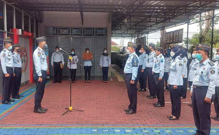 Salatiga, RASIKAFM – Andri Lesmano Kepala Rutan Kelas IIB Salatiga pimpin langsung kegiatan apel pagi pegawai. Senin (04/10). Andri menegaskan sebagai ASN wajib menanamkan core value BerAKHLAK yang digagas Presiden.