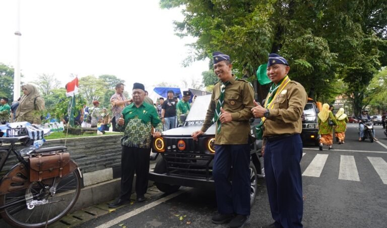 Menariknya, Pj. Sekretaris Daerah bersama rombongan menuju lokasi apel menggunakan mobil listrik prototipe karya siswa SMK Muhammadiyah Salatiga, yang menjadi simbol inovasi dan semangat kemandirian generasi muda Muhammadiyah.