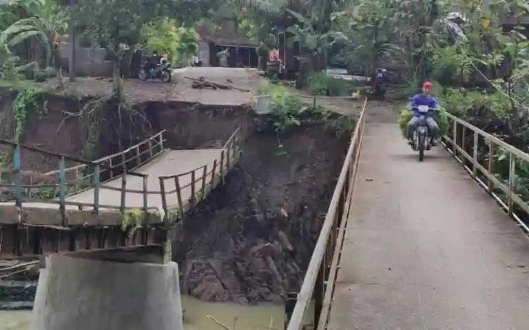 “Sebelum amblas, jembatan tersebut masih bisa dilalui oleh kendaraan roda empat yang bermuatan sedang kalau muatan berat sudah tidak bisa lewat karena rawan,” kata Suji Rabu (29/3/2023).