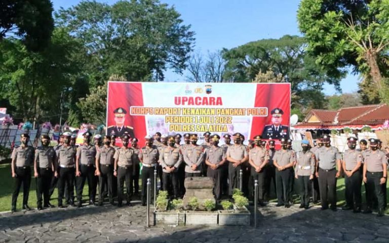 Bertepatan dengan Hari Ulang Tahun Bhayangkara Ke-76, sebanyak 43 Personil Polres Salatiga mendapatkan anugerah kenaikan pangkat setingkat lebih tinggi, Upacara Kenaikan dilaksanakan di Lapangan Apel Polres Salatiga, Jumat 01/07/2022 pagi.