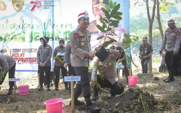 Semarang – Irjen Pol Ahmad Luthfi, Kapolda Jateng, memimpin penanaman ribuan pohon di Waduk Jatibarang, Gunungpati, Kota Semarang. Kegiatan ini merupakan upaya Polri dalam mencegah perubahan iklim dan melestarikan lingkungan. Berbagai jenis pohon keras seperti Trembesi, Mahoni, dan Beringin ditanam dengan mempertimbangkan karakteristik wilayah.