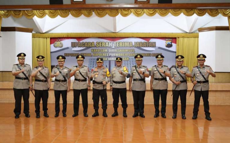 SEMARANG – Kapolda Jateng, Irjen Pol Ahmad Luthfi melakukan rotasi 5 jabatan diantaranya dua Pejabat Utama (PJU) di Polda Jateng dan tiga Kapolres Jajaran. Upacara Serah Terima Jabatan (Sertijab) ini dilaksanakan di Gedung Borobudur Mapolda Jateng pada Rabu, (20/7/2022).