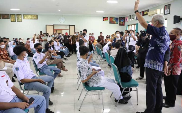 Gubernur Jawa Tengah Ganjar Pranowo SAAT meninjau vaksinasi booster di SMAN 1 Klaten, Rabu (13/7/2022).