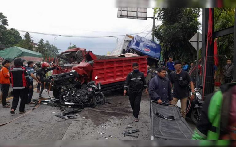Dari beberapa gambar yang tersebar di media sosial, kecelakaan itu melibatkan banyak kendaraan, yakni truk boks, truk pasir dan juga sepeda motor.