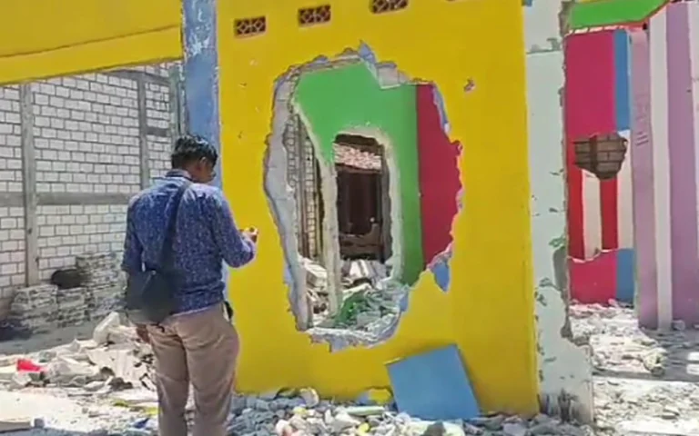 Kondisi sebuah rumah di Desa Terteg, Pati yang tinggal puing-puing setelah dirobohkan oleh wanita asal Pabelan, Kabupaten Semarang, Minggu (11/8/2024). Foto: tangkapan layar video warga