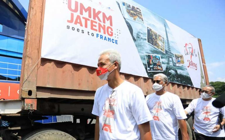 SURAKARTA – Kerjasama pentahelix yang dilakukan antara Pemkot Surakarta, Universitas Negeri Sebelas Maret (UNS), dan Bank Jateng berhasil membawa UMKM di Solo ekspor ke Prancis. Pelepasan ekspor dilakukan langsung oleh Gubernur Jawa Tengah Ganjar Pranowo, di Solo Techno Park, Rabu (9/11).