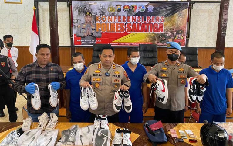 Empat buruh pabrik sepatu PT SCI (Selalu Cinta Indonesia, ditangkap jajaran Satreskrim Polres Salatiga, setelah terindikasi menjadi komplotan pencuri sepatu di pabrik tempatnya bekerja.