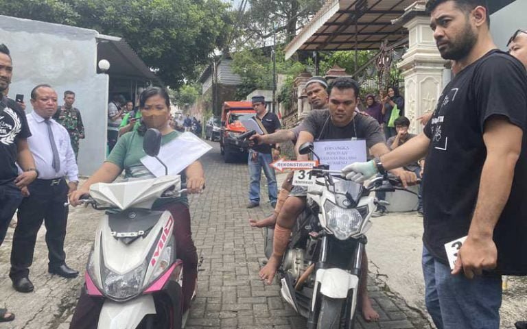 “Berkiatn dengan dugaan tindak pidana pembunuhan berencana dimana bahwa clien kami adalah orang yang disuruh saudara Muslimin. Reka adegan diperagakan sebanyak 59 adegan yang dilakukan oleh clien kami,” ujar Aryas disela-sela rekonstruksi.