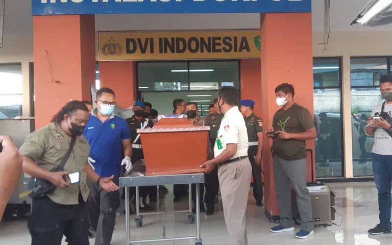 SEMARANG – Kopral Dua (Kopda) Muslimin menjalani pemeriksaan autopsi di Rumah Sakit Bhayangkara Semarang Kamis (28/7/2022). Proses penyelidikan ini dilakukan usai dalang dari pembunuhan istrinya bernama Rina Wulandari tersebut dikabarkan bunuh diri dengan cara meminum racun di rumah orangtuanya di Desa Trompo, Kecamatan Kendal, Kabupaten Kendal sekitar pukul 07.00 WIB.