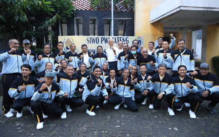 SEMARANG – Gubernur Ganjar Pranowo melepas kontingen atlet wartawan PWI Jawa Tengah yang akan berkompetisi di Pekan Olahraga Wartawan Nasional (Porwanas) 2022, di Gedung Pers Jateng, Kamis (17/11).