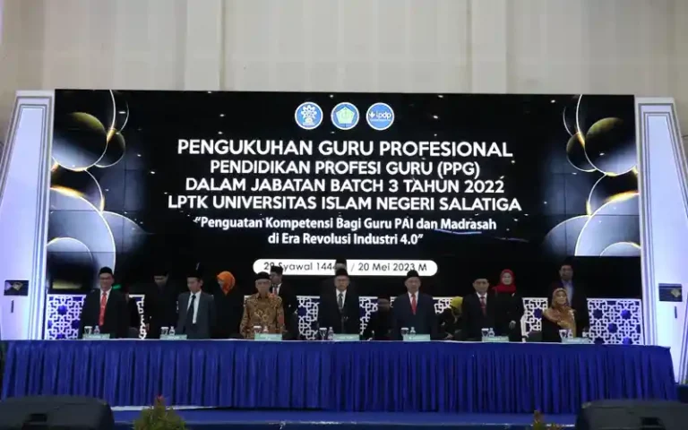 RASIKAFM.COM | SALATIGA - Lembaga Pendidikan Tenaga Kependidikan (LPTK) Universitas Islam Negeri Salatiga berhasil meluluskan 410 orang peserta. Upacara Kelulusan dan Pengukuhan Guru Profesional Pendidikan Profesi Guru (PPG) dalam Jabatan Batch 3 digelar di Gedung Auditorium dan Student Center Kampus III pada Sabtu (20/5/2023).