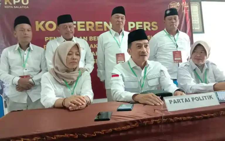 Mantan Wali Kota Salatiga Yuliyanto saat mendaftar sebagai bacaleg Partai Gerindra minggu (14/5/2023) di kantor Komisi Pemilihan Umum (KPU) Kota Salatiga