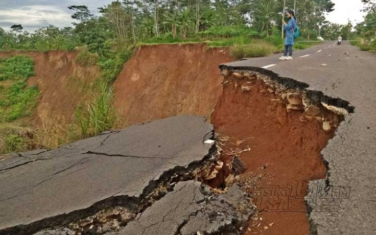 “Jadi batuan dalam struktur tanahnya adalah batuan rapuh, sehingga rawan ambles dan puncaknya pada Februari 2022 lalu,” sambungnya.