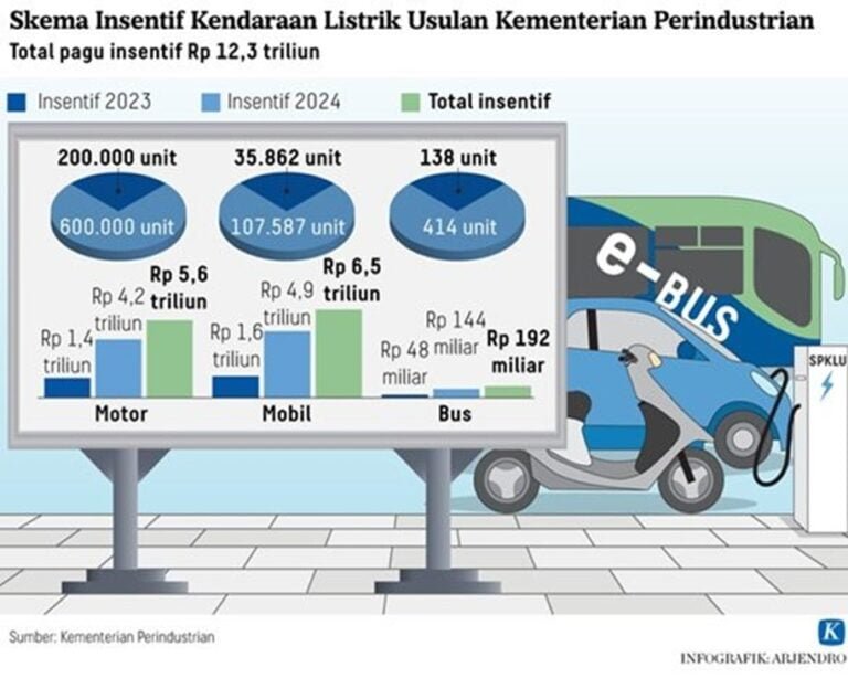 Kementerian Perindustrian, memiliki program insentif kendaraan listrik sebesar Rp 12,3 triliun. Namun, program itu dinilai kurang jelas karena tidak merinci jenis kendaraannya. Lalu, Kemenperin menambah program dengan membeli bus dalam dua tahun anggaran 2023-2024 sebanyak 552 unit.