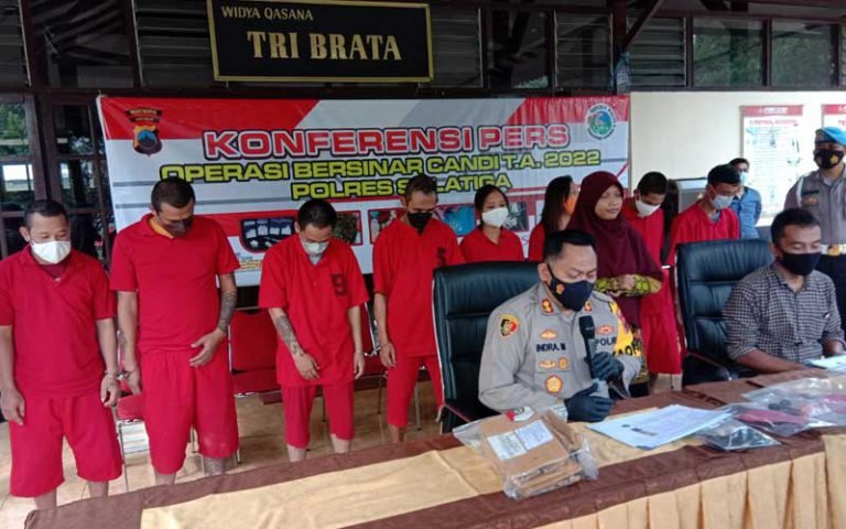 Kapolres Salatiga AKBP Indra Mardiana didampingi Kasat Resnarkoba Iptu Wikan Sri Kadiyono menjelaskan, penangkapan ke 8 tersangka narkoba ini merupakan bagian dari Operasi Bersinar Candi 2022.