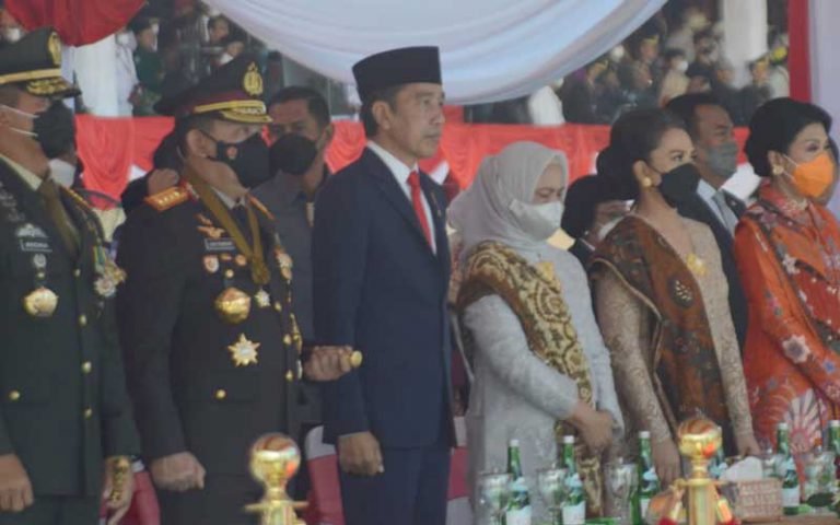 SEMARANG – Hari Ulang Tahun (HUT) Bhayangkara ke-76 dirayakan di Akademi Kepolisian (Akpol), Kecamatan Gajahmungkur Kota Semarang pada Selasa (5/7/2022).