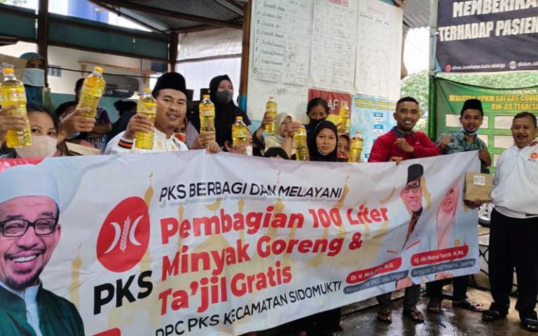 Partai Keadilan Sejahtera Kecamatan Sidomukti, Kota Salatiga, Rabu (20/4) sore membagikan total 100 liter minyak goreng kepada masyarakat di RW 08 Tegalsari. Kegiatan bakti sosial pembagian minyak goreng dan takjil ini untuk memperingati Milad PKS ke-20.